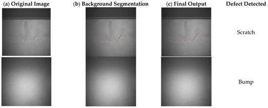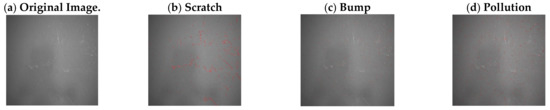 The computer vision models referred to consist of local binary patterns (LBP), machine vision, local annular contrast, principal component analysis (PCA), and twin-support vector machines (SVMs). Hot-rolled steel stripped surface defect detection using the LBP-based noise-robust method was demonstrated by K. Song et al. [20]. A modified threshold scheme of LBP used an adjacent evaluation window; thus, intra-class changes by feature variations and the changes of illumination and grayscale were used for defect detection. Weld defect detection and classification using machine vision was presented by J. Sun et al. [21]. A gaussian mixture model was used with a modified background subtraction method for defective welds feature extraction. The defect types detected included weld perforation, weld fusion, cold solder joints, and pseudo-defects. Steel bar surface defects detection by a real-time inspection algorithm using local annular contrast was demonstrated by W. Li et al. [22]. Local annular backgrounds with large contrast are used for overcoming grey fluctuating values in defect detection and are helpful for smoothing noise. The detected defect types are pits, overfills, and scratches. An in-situ magnetic resonance imaging method used for defect detection in rechargeable lithium-ion batteries was presented by A. llott et al. [23]. PCA was used to group the induced magnetic field changes in cells to check the electrode materials level of lithium incorporation and thus diagnose defects observed during assembly. A method for steel surface defect recognition based on twin-SVM and multi-type statistical features was demonstrated by M. Chu et al. [24]. Multiple statistical features were used to extract dummy boundary and representative samples, and insensitive affine transformation of scale and rotation was used with a twin-SVM for solving the multi-class classification problem.