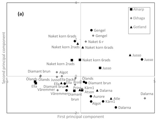 Cereals are the most important type of crops in terms of quantity available for food production to the human population [1,2,3]. The three major crops contributing to human food are wheat, maize, and rice, all three belonging to the cereal group of crops [1]. The total harvest of these three crops, are 2.5 billion tonnes, which contributes 42% and 37% of the human calorie and protein supply, respectively, thereby making these crops outstanding for human food security [4]. However, within the Nordic hemisphere, only wheat among these three can be grown, but other cereals such as barley, rye, and oats are instead making an important contribution to the cereals share in the human diet [5]. Similarly to other regions of the world, locally adapted cultivars have been developed in the Nordic regions, of crops traditionally in use [6]. Such traditionally grown cultivars (landraces) are often adapted to the local environment in which they have been grown, including an adaptation to the local climatic and soil conditions [7]. Recent studies have also indicated that some traditionally grown cultivars have a good capability for uptake and transportation of, e.g., minerals to the grain, resulting in a high nutritional value of the grains [8,9].