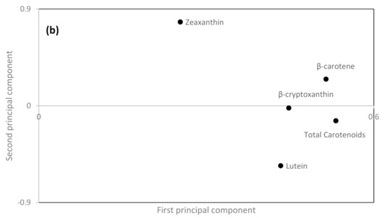 3.2. Percentage of Explanation for Variation in Carotenoids Content