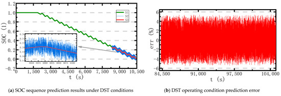 To better verify the accuracy of the prediction model, the study used the SOH sequence of an 80% DOD cycle test, the SOC sequence of a 10% DOD cycle test, and the SOC data of a dynamic stress test (DST) as the prediction samples.