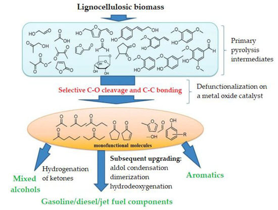 - Bridgwater, A.V. Catalysis in thermal biomass conversion. Appl. Catal. A Gen. 1994, 116, 5–47. [Google Scholar] [CrossRef]