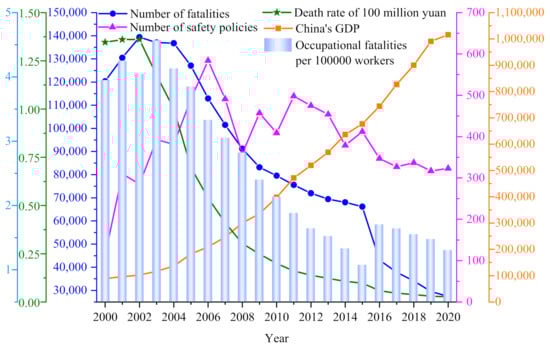Accordingly, the data to support an assessment of safety policies are insufficient, the research on dynamic policy effects is limited, and the statistical analysis of work-related accidents is not sufficiently deep. This paper studies the characteristics of the evolution of safety policies in China, provides statistics on and classification of safety policies, and constructs a safety policy system. Qualitative and quantitative analyses of the impact of safety policies on accidents are conducted, which can be used as references in the study of the factors that influence work-related accidents, methods for controlling such accidents, and the formulation of future safety policies.