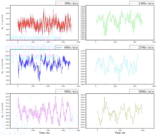 According to the above experimental data, we concluded that, when the speed of the SM gradually increased from 300 r/min, the fluctuation in the speed of the SM gradually increased, reflecting the gradual increase in the speed fluctuation of the SM. When the speed reached 1500 r/min, the fluctuation in the speed of the SM remained unchanged, reflecting that the degree of fluctuation in the speed of the SM remained unchanged.