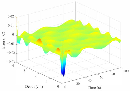 It is inevitable for the finite difference method to generate the truncation error, so the accuracy of algebraic Equation (24) needs to be taken into account. As the proposed methodology discretizes spatiotemporal parameters and reduces the order of empirical eigenfunctions, there will be model mismatches. Therefore, it is necessary to given a trade-off between the accuracy of spatiotemporal synthesis and computational efficiency, whose residual evaluation can be used: