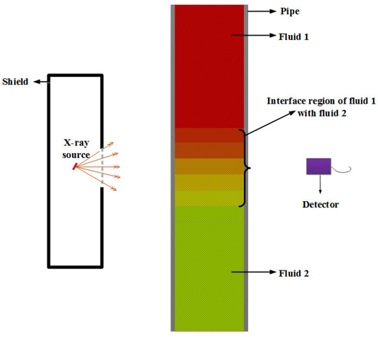 Radiation-based instruments have been widely used in petrochemical and oil industries to monitor liquid products transported through the same pipeline. Different radioactive gamma-ray emitter sources are typically used as radiation generators in the instruments mentioned above. The idea at the basis of this research is to investigate the use of an X-ray tube rather than a radioisotope source as an X-ray generator: This choice brings some advantages that will be discussed. The study is performed through a Monte Carlo simulation and artificial intelligence. Here, the system is composed of an X-ray tube, a pipe including fluid, and a NaI detector. Two-by-two mixtures of four various oil products with different volume ratios were considered to model the pipe’s interface region. For each combination, the X-ray spectrum was recorded in the detector in all the simulations. The recorded spectra were used for training and testing the multilayer perceptron (MLP) models. After training, MLP neural networks could estimate each oil product’s volume ratio with a mean absolute error of 2.72 which is slightly even better than what was obtained in former studies using radioisotope sources.