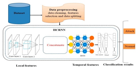 HCRNN-based deep learning decreases these challenges by using a RNN with a CNN DL model. The source of the experiment is the key structure of the HCRNNIDS that exists here. The detail of the HCRNNIDS is depicted in Figure 1.