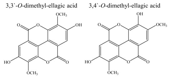 Chemical structure of potential isomers of 1 (3,3′-O-dimethyl-ellagic acid and 3,4′-O-dimethyl-ellagic acid).