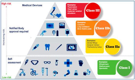 Scheme of the general classification of medical devices depending on the application risk.