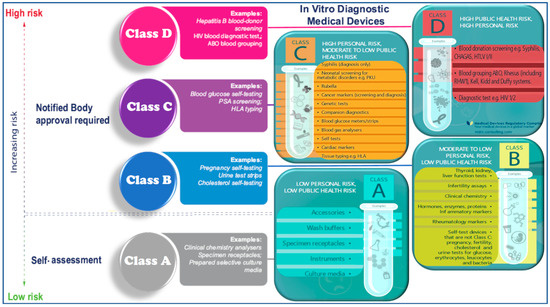 Scheme of the general classification of in vitro diagnostic medical devices depending on the application risk.
