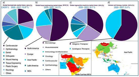 - Regenerative Medicine Market Size, Share & Trends Analysis by Product (Primary Cell-based, Stem & Progenitor Cell-based), by Therapeutic Category (Dermatology, Oncology) and Segment Forecasts, 2019–2025. Available online: https://www.grandviewresearch.com/industry-analysis/regenerative-medicine-market (accessed on 12 March 2021).