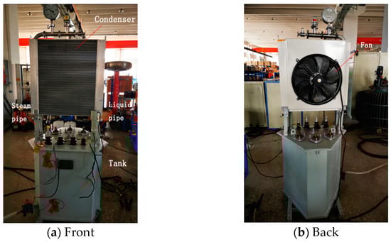 Since the 1950s, the Institute of Electrical Engineering of Chinese Academy of Sciences (IEECAS) has started to carry out the application research of fluorocarbon refrigerant evaporative cooling technology in electrical equipment. In these years, it has been successfully applied to many kinds of electrical equipment such as giant hydro generators (27 MW units and 28 MW units of Three Gorges Project) [], large turbine generators [], iron removers [], power electronic devices [,], ion source magnet [], super computer [], etc. In the decades of research progress, the durability and aging resistance of fluorocarbon coolant have also been tested and a lot of engineering practice experience and technical reserves have been accumulated, which provides a solid foundation for the application of evaporative cooling technology in transformer. The evaporative cooling transformer has also been made a subject of preliminary application attempt in the early stage [,]. At present, the research and development of conventional evaporative cooling transformer is relatively backward because of the high cost of coolant. Therefore, the application of evaporative cooling technology in the field of transformer mainly solves a series of problems that are difficult to be solved by conventional cooling methods, such as high-speed train traction transformer [] and marine transformer, but there is a lack of research on mine transformer.