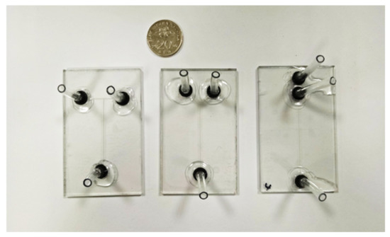 - Faustino, V.; Catarino, S.O.; Lima, R.; Minas, G. Biomedical microfluidic devices by using low-cost fabrication techniques: A review. J. Biomech. 2016, 49, 2280–2292. [Google Scholar] [CrossRef]