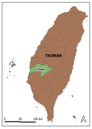 This study focused on betel nuts plantations in Taiwan because they are widely spread in this country and under controversy for their role in human wellness and related bioethical implications [,]. Another usually neglected aspect of that issue is the role of these plantations in gas exchanges due to their eco-physiological processes. Arboreal plants are able to absorb significant amounts of CO2 and, in most cases, to fix the carbon in their tissues for many years, leading to a substantial removal of the atmospheric CO2, mostly dependent on the growth phase and management [,].