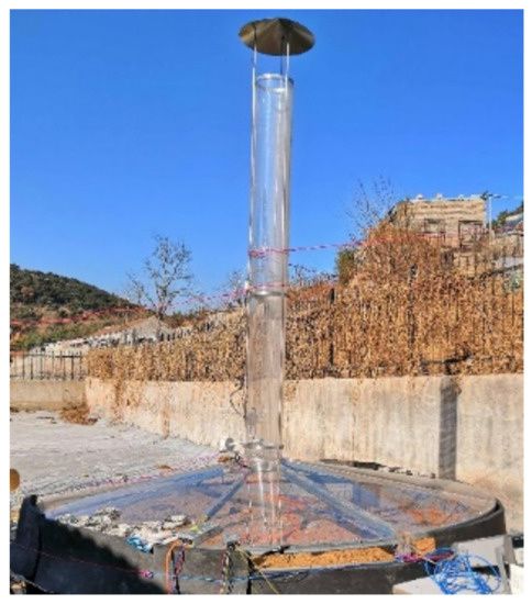 - Bejalwar, A.; Belkhode, P. Analysis of Experimental Setup of a Small Solar Chimney Power Plant. Procedia Manuf. 2018, 20, 481–486. [Google Scholar] [CrossRef]