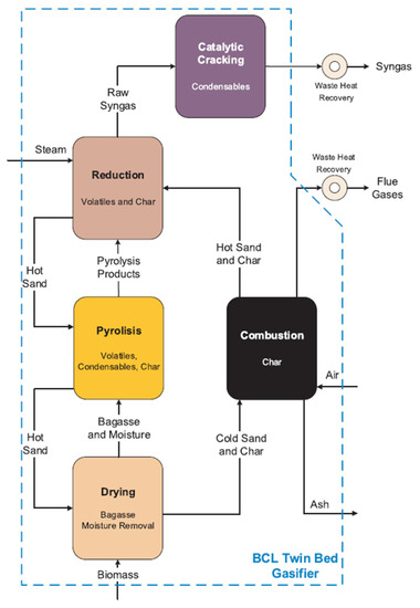 Modeling and simulation steps of the twin circulated bed BCL bagasse gasifier [60].