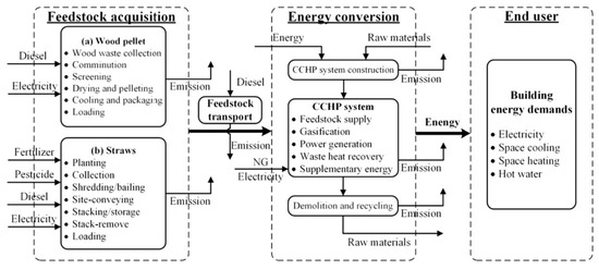 LCA boundary diagram of the biomass gasification-integrated CCHP system [89].