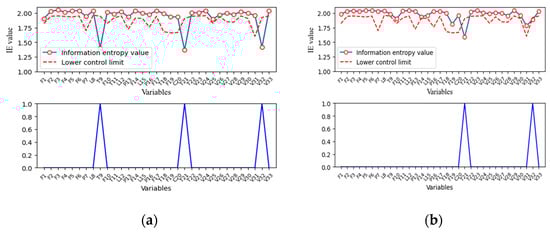 (a) IE value of each variable in fault 14; (b) IE value of each variable in fault 17.