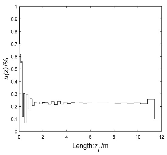 where is the concentration of catalyst , mol/L; is the concentration of catalyst , mol/L; is the pipe length of the tubular reactor, m; is the mixing fraction of catalyst , %; is the performance index of the model, mol/L. In the experiment, we set the to 800, and the is 200.