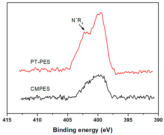 High-resolution XPS spectra of N1s for the CMPES substrate and PT-PES-5h AEM.