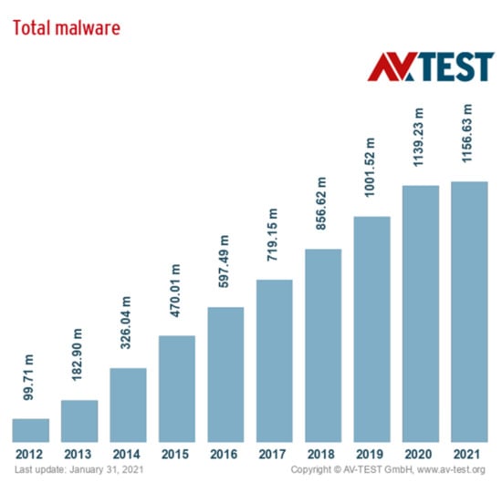 - Available online: https://www.av-test.org/en/statistics/malware/ (accessed on 6 April 2021).