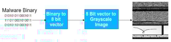 - Gibert, D.; Mateu, C.; Planes, J.; Vicens, R. Using convolutional neural networks for classification of malware represented as images. J. Comput. Virol. Hacking Tech. 2019, 15, 15–28. [Google Scholar] [CrossRef]