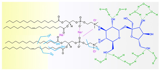 - Takahashi, H.; Ohmae, H.; Hatta, I. Trehalose-induced destabilization of interdigitated gel phase in dihexadecylphosphatidylcholine. Biophys. J. 1997, 73, 3030–3038. [Google Scholar] [CrossRef]