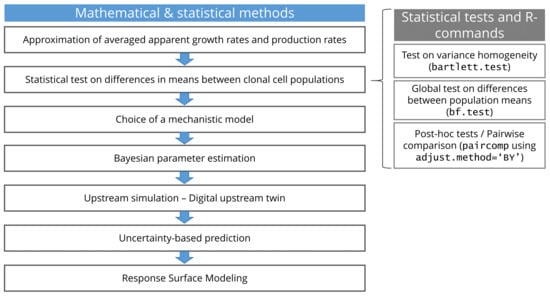 - Hernández Rodríguez, T.; Frahm, B. Digital Seed Train Twins and Statistical Methods. Adv. Biochem. Eng. Biotechnol. 2020. [Google Scholar] [CrossRef]