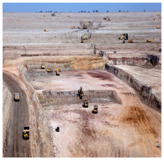 The Sindh Engro coalfield is the largest coalfield of Pakistan and considered one of the largest coal deposits (1.33 billion tonnes of coking coal) in a world that covers an area of 9000 KM2 approximately. As per the declaration of diagnostic macerals and petrographic, Thar coal is humic and predominantly features huminite with significant amounts of liptinite and low quantities of inertinite macerals. The Thar coal represents predominantly topogenous mires deposited under anaerobic conditions with limited thermal and oxidative tissue destruction. Coal mining near the residential area of Sindh has a prodigious impact on the environment, ecological habitats, society, and the country’s economy. The global environment integrates the global living beings with their relationship with the atmosphere, hydrosphere, biosphere, and lithosphere. These four components of the environment enable us to cover all environmental sustainability areas. The open-pit coal mining’s remediation of destruction has been the focus of several studies. Previous literature has considered the coalfields as an integral part of the global economy. Still, the greenhouse gas emission from coal mining has exceeded the remaining sectors of the global carbon budget [2,9,11,12,13].