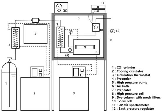 - Suzuki, S.; Aoki, K.; Moribe, K.; Sako, T. Solubility Measurement in Supercritical CO2 with High Pressure UV/VIS Absorption Spectroscopy. In Asian Pacific Confederation of Chemical Engineering Congress Program and Abstract; The Society of Chemical Engineers: Tokyo, Japan, 2004; p. 839. [Google Scholar] [CrossRef]
