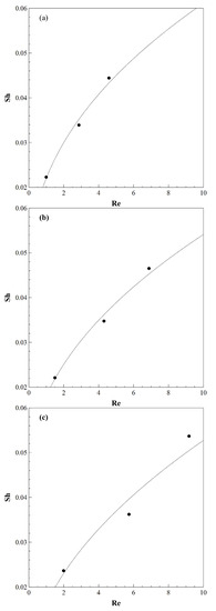 | 20 | 1 | 3.344 | 0.996 | 0.0222 | Sh = 0.0221·Re0.442 | 0.9912 |