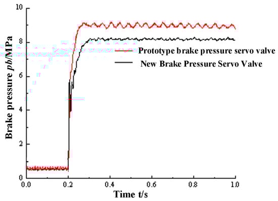 In order to verify the effect of the TSBPSV, we compared with the prototypical brake servo valve. The results are shown in Figure 11. In order to verify the validity of the model, the response curves of two pressure servo valves are obtained under the condition of step signal. We analyzed the experimental contrast curve from two aspects.