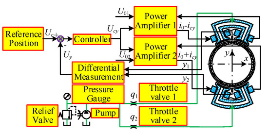 - Zhao, J.H.; Zhang, G.J.; Cao, J.B.; Gao, D.R.; Du, G.J. Decouping Control of Single DOF Supporting System of Magnetic-Liquid Double Suspension Bearing. Mach. Tool Hydraul. 2020, 48, 1–8. [Google Scholar]