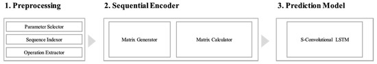 - Sequential encoder: Individual operations are converted into two matrices, an adjacent matrix and a feature matrix. Operation sequence data are used for the adjacent matrix, and sensor data are used for the feature matrices. Each feature matrix reflects a single-sensor attribute. Sequential feature matrices are derived by dividing the adjacent matrix by the feature matrix.