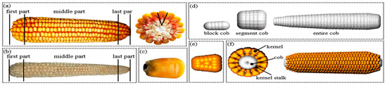21]. All of the above studies provide some theoretical and data support for the optimal design of corn threshing element parameters, but the difficulty of the simulation process to restore the state of cob, core, and kernel separation in the actual operation leads to its inability to achieve a high precision simulation of the kinetic state of the corn kernel population during the threshing process [