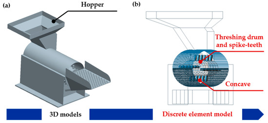 24]. Qu et al. studied the spike-tooth threshing device using EDEM software and analyzed the overall force on the corn cob during the threshing process [