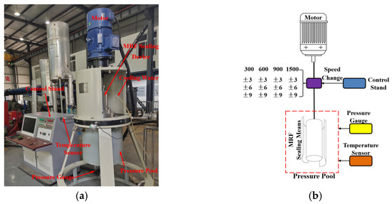 With the rapid development of the world economy, energy demand has rapidly increased. To realize the sustainable development of society and protection of the Earth, green and environmentally friendly renewable energy has become an important research topic. According to the World Energy Development Report (2020) report released by the China International Energy Security Research Center, the global installed hydropower capacity has reached 1.308 billion kW, ranking first in the world’s list of renewable energy [1]. Regarding hydropower, the sealing performance of the main shaft of the core equipment turbine is directly related to the safety and reliability of the entire power generation process. Presently, the main shafts of hydraulic turbines mostly use rubber, packing, floating-ring, and labyrinth seals [2]. However, these sealing methods have several problems, including having complex structures and low reliability and being easily worn down. As a new type of sealing method, magnetorheological (MR) fluid sealing has become a research hotspot in the sealing industry, owing to its high reliability, low viscous friction, and good self-healing properties [3,4]. MR fluids are mainly comprised of micron-sized magnetic solid particles, surfactants, and base fluids. Compared with magnetic fluid seals, magnetic solid particles sealed by MR fluids are much larger. Rheological fluid sealing is mainly aimed at large-gap sealing [5,6], mainly employing the magnetic force of an external magnetic field to gather and align magnetic solid particles in the fluid into chains, to form a semi-solid having an anti-shearing effect [7,8].