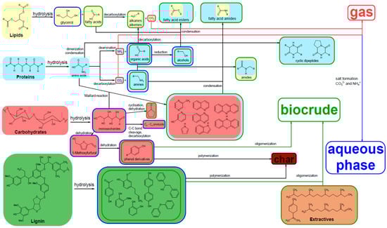 - Teri, G.; Luo, L.; Savage, P.E. Hydrothermal treatment of protein, polysaccharide, and lipids alone and in mixtures. Energy Fuels 2014, 28, 7501–7509. [Google Scholar] [CrossRef]