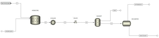 The following are available online at https://www.mdpi.com/article/10.3390/pr9071172/s1, Figure S1: Elemental analysis of feedstock, biocrude and upgraded biocrude for Spirulina; Figure S2: Elemental analysis of feedstock, biocrude and upgraded biocrude for sewage sludge; Figure S3: Elemental analysis of feedstock, biocrude and upgraded biocrude for wheat straw; Table S1: Feedstock composition, dry-matter content and mass flow for each model component in the feed stream of the Aspen Plus® model. The considered mass flows are corrected for the mass of water that is added by the assumption that hydrolysis had already taken place. It is assumed that 80% of the fatty acids had been bound in a trigliyeride, while 20% are free fatty acids. For carbohydrates, proteins and lignin it is assumed that 60%, 70% and 100% of the model compounds had been bound in polymeric form, respectively; Table S2: All model compounds, their respective component ID in the Aspen Plus® model and their respective molecular masses.
