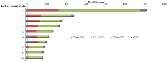 3.6.1. Distribution of Total Citations over Time Periods for the Top 10 Cited Research Articles