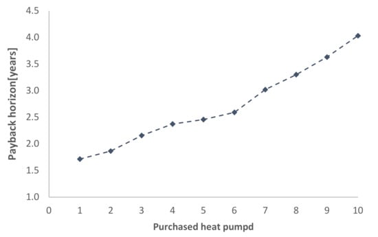 Payback time according to the number of heat pumps purchased.