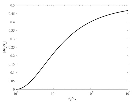 The relationship between |Δke/ke| and υ1/υ2.