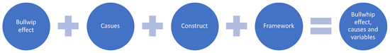 The search equation focused on the variables that cause the bullwhip effect. During the process, the article of [2], due to its importance in proposing the first factors that cause the bullwhip effect in supply chains, will show the most relevant causes of the bullwhip effect create a complete framework on the generators of this phenomenon. Figure 1 shows the structure of the keywords used.
