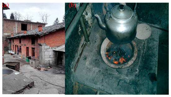 The stove (a) and building structure (b) in rural Xuanwei, China.