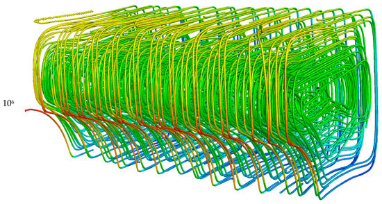 Equations (1)–(5) are the main equations governing fluid flow that should be solved by software to obtain the desired results. Figure 2 provides the boundary conditions required for this purpose. In this regard, a SIMPLE code written in FORTRAN software was used to simultaneously solve the equations and obtain the results for writing algebraic equations of volume control. In addition, the convergence criterion was used as follows: