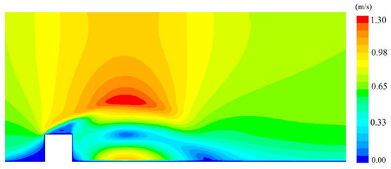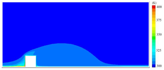 Figure 4 and Figure 5 represents the temperature profiles in the last rib across the midplane zone of the channel when prone to B = 0.2 T and 0.5 T, respectively. As can be seen in these figures, each corrugation influenced the adjacent fluid flow. The temperature of fluid film near the wall augmented when the magnetic field strength increased. Similarly, Figure 6 and Figure 7 illustrates the velocity profile in the last rib across the midplane zone of channel when susceptible to B = 0.2 T and 0.5 T, respectively. As can be seen in these figures, some weak and strong waves are shown near to the rib, which impacted the fluid flow. Therefore, it is evident that the influence of the ribs on the fluid flow near the wall increased when the magnetic field strength incremented.