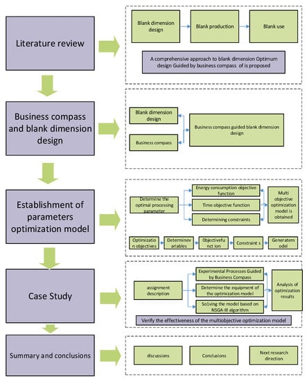Different studies have different emphases and corresponding advantages, and the methods in the references can meet their needs. Nevertheless, blank production and blank use are processes with large energy consumption. These methods only select the designed blank dimensions, and the selected blank dimensions can only ensure the energy consumption and efficiency of the later processing. In this study, the optimal choice was to consider the blank dimensions designed by the actual situation of the enterprise from the perspective of blank production and blank use of the enterprise operating compass.