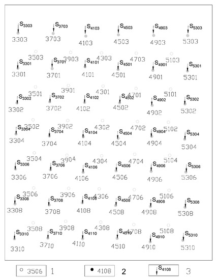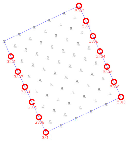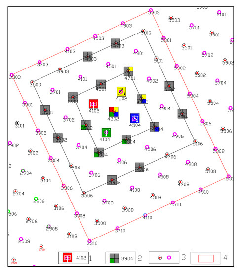 As shown in Figure 5, each mining area of the mine is continuously distributed, and the model area includes other boreholes except the boreholes in the target mining area. When generalizing the source and sink terms, one should ignore the boreholes in the non-target mining area, and only the boreholes in the target mining area should be regarded as the endogenous sink terms. There are 25 extraction wells and 42 injection wells in the simulated target mining area. Due to the continuous connection of mining areas, after ignoring the non-target mining area drilling flow, the simulation target mining area edge injection well flow should be reduced to offset the model boundary water level change caused by the “zero” generalization of non-target mining area drilling. The edge injection well for flow adjustment is shown in Figure 4.