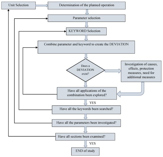Depiction of the HAZOP flow-chart, used in the HAZOP study of a SCOPI and of an MRS/GTS station.