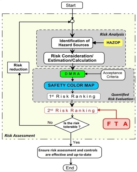 Without doubt, the variety of risk analysis and assessment (RAA) techniques in the field of occupational safety and health (OSH) is such that there is an abundance of well-organized methods for the majority of cases, and numerous studies build up hybrid-models amalgamating individual RAA processes. Nevertheless, each RAA procedure has precise limitations or constraints in its performance to various incidents, and therefore, a discreet technique cannot achieve the optimal risk-assessment outcome at the workplaces. On the other hand, cooperative methodologies, incorporating qualitative and/or quantitative, hybrid, probabilistic, stochastic (STO) and/or deterministic (DET), multicriteria decision-making (MCDM) and/or Fuzzy-OSH, automated RAA techniques, etc., for instance the ones which combine QRA, HAZOP, XPA-HAZOP, DMRA, AHP, Fuzzy-AHP, FEAHP, TSP, PRAT, FTA, BIM, QFD, FMECA, PHSA, SCEA, FMEDA, LOPA and so forth, would be more effectual on the OSH field [1,2,3,4,5,6,7,8,9,10,11,12,13,14,15,16,17,18,19,20,21,22,23,24,25]. In the last decade, many articles have continued incorporating DET methods (such as the well-known FTA) in OSH-RAA, such as: (i) the work of Mutlu et al. (2019) [26], which integrates FTA with Failure-Mode and Effect-Analysis (FMEA) and BIFPET, (ii) the articles of Babaei et al. (2018) [27] and Yasli and Bolat (2018) [28], which incorporate FTA in fuzzy OSH-RAA methods, (iii) the paper of Gul and Ak (2018) [29], which uses the cooperation of MCDM with FTA, (iv) the work of Fuentes-Bargues et al. (2017) [30], which combines HAZOP with FTA in RAA of fuel storage-terminals, and (v) the article of Marhavilas et al. (2020) [31,32], which mingles two different configurations of the MCDM method, initially the Analytical Hierarchy Process (the typical-AHP), and afterwards the Fuzzy-Extended AHP (the FEAHP), along with the Proportional Risk Assessment Technique (PRAT) and the analysis of Time-Series Processes (TSP), and lastly with the FTA, in sustainable constructions engineering projects. The reason for incorporating the above curt list of references, concerning these RAA techniques, is to show that all these techniques could be significant separate elements in RAA hybridization processes. In other words, this list of sources constitutes a simple illustration of the techniques that could be combined in order for any safety manager to develop more powerful RAA methods.