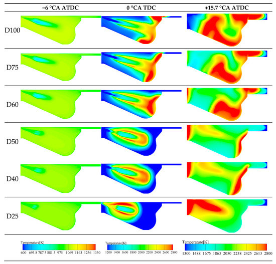 In-cylinder temperature distribution field with different NG mixing ratios.